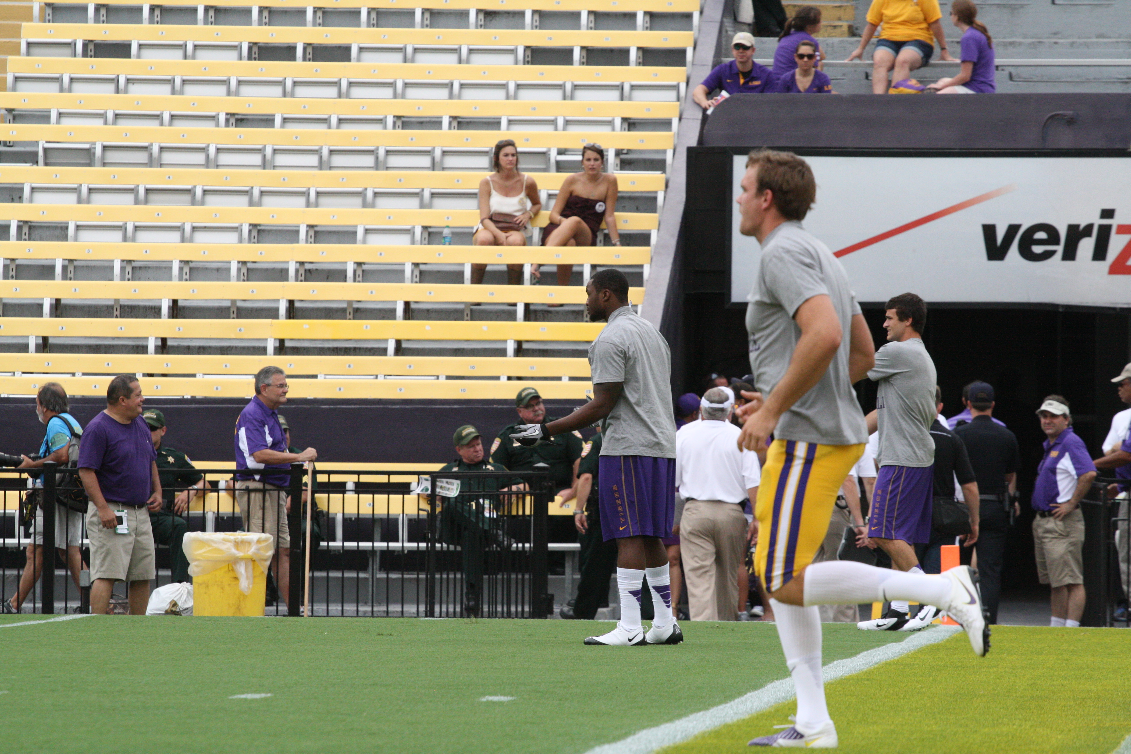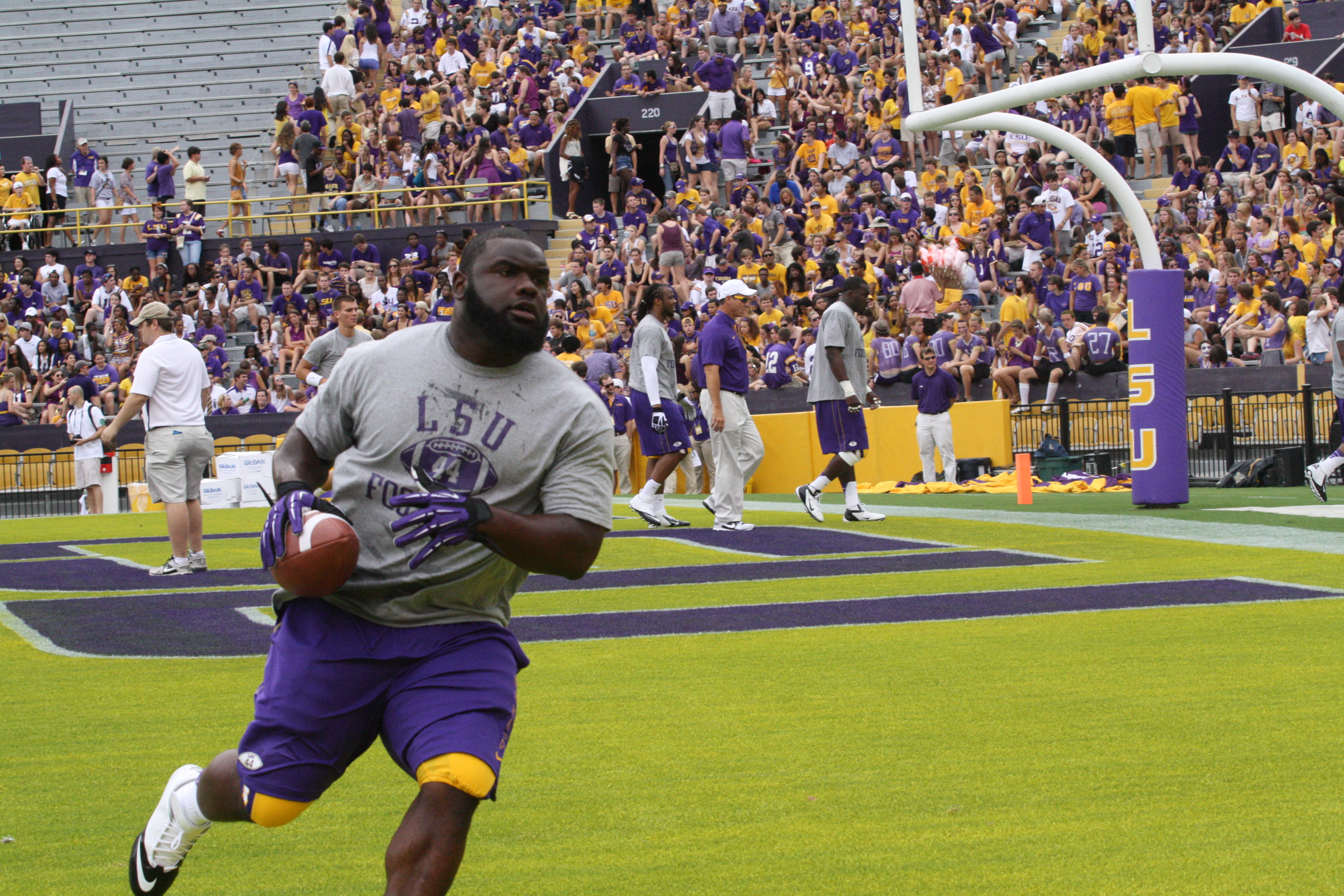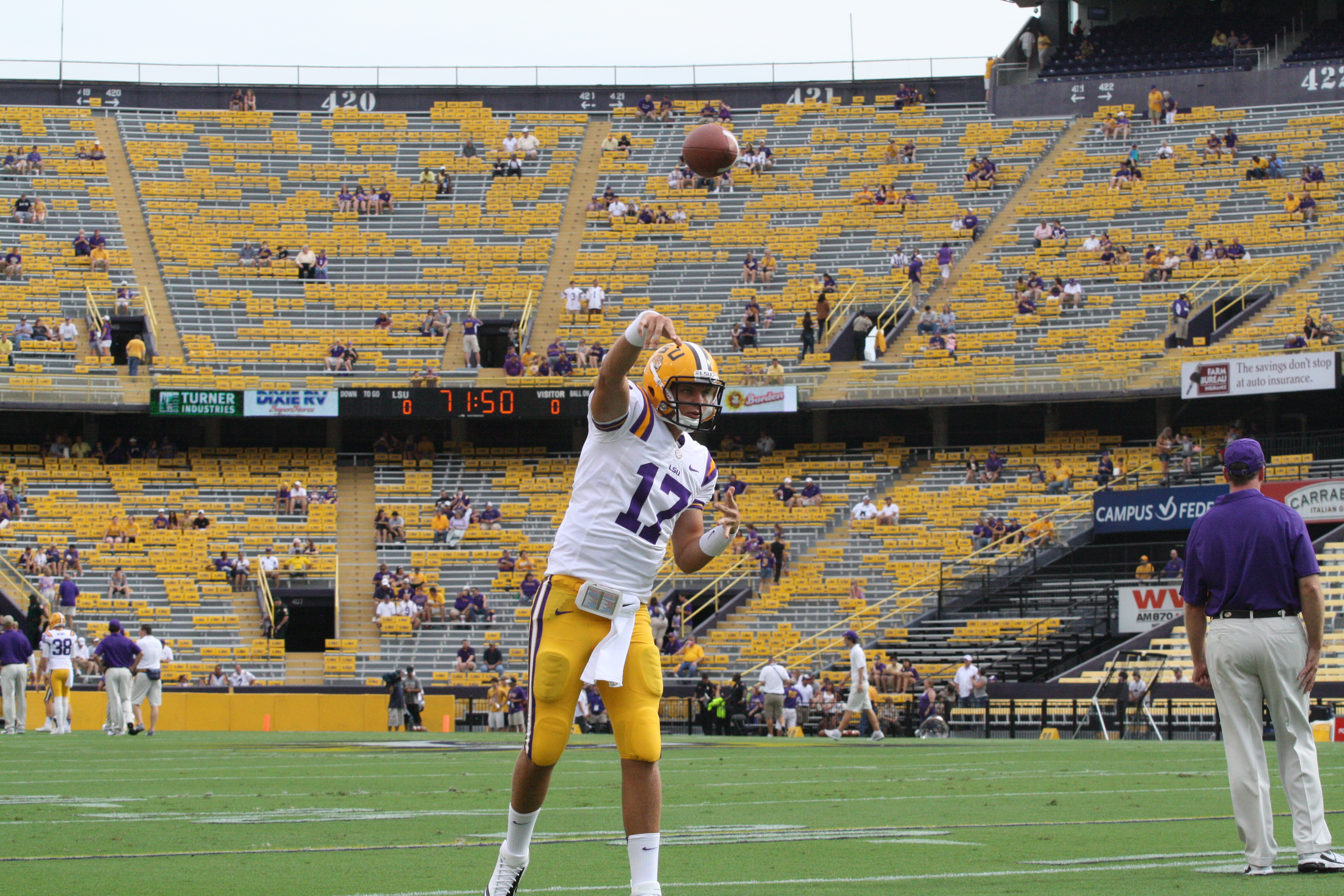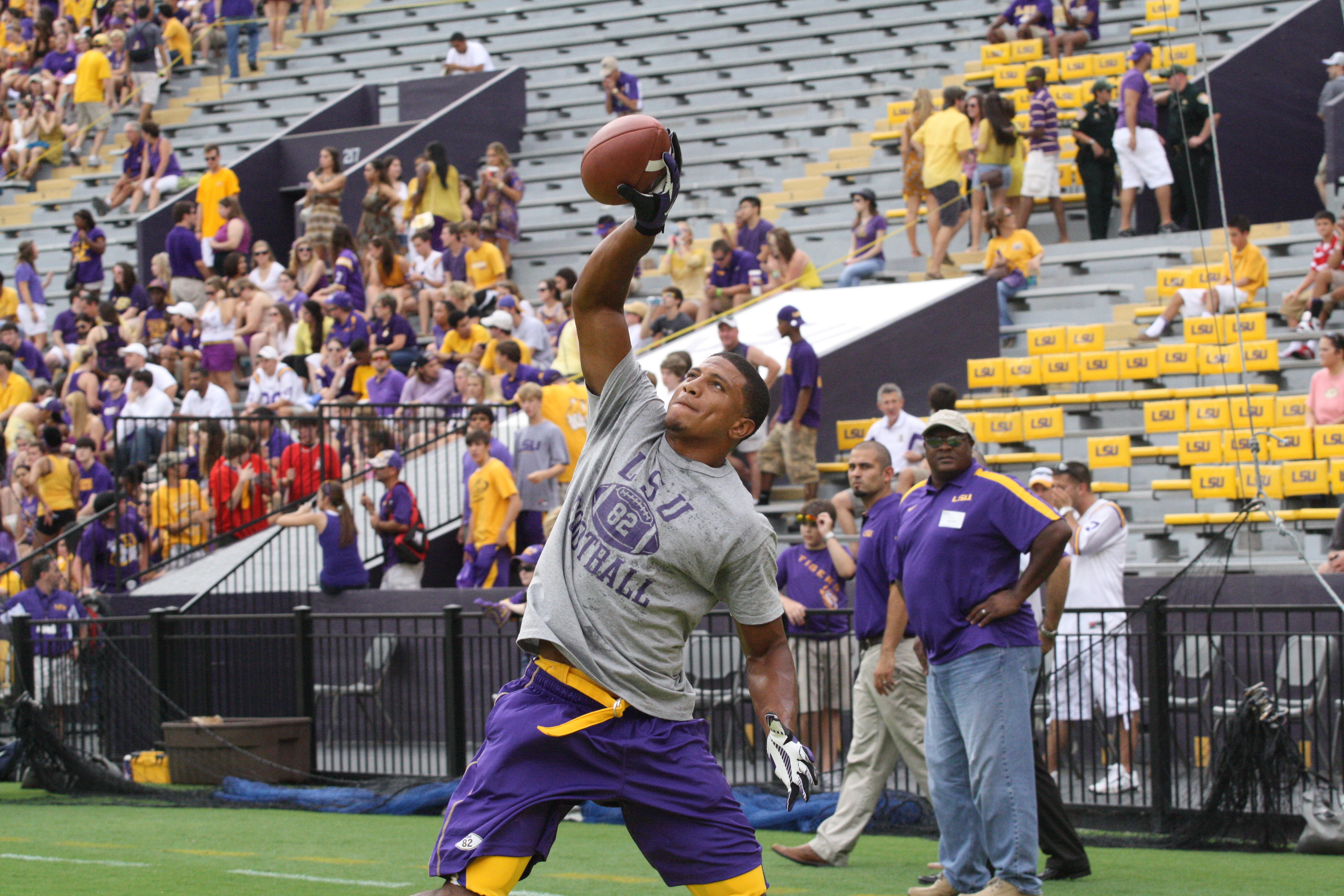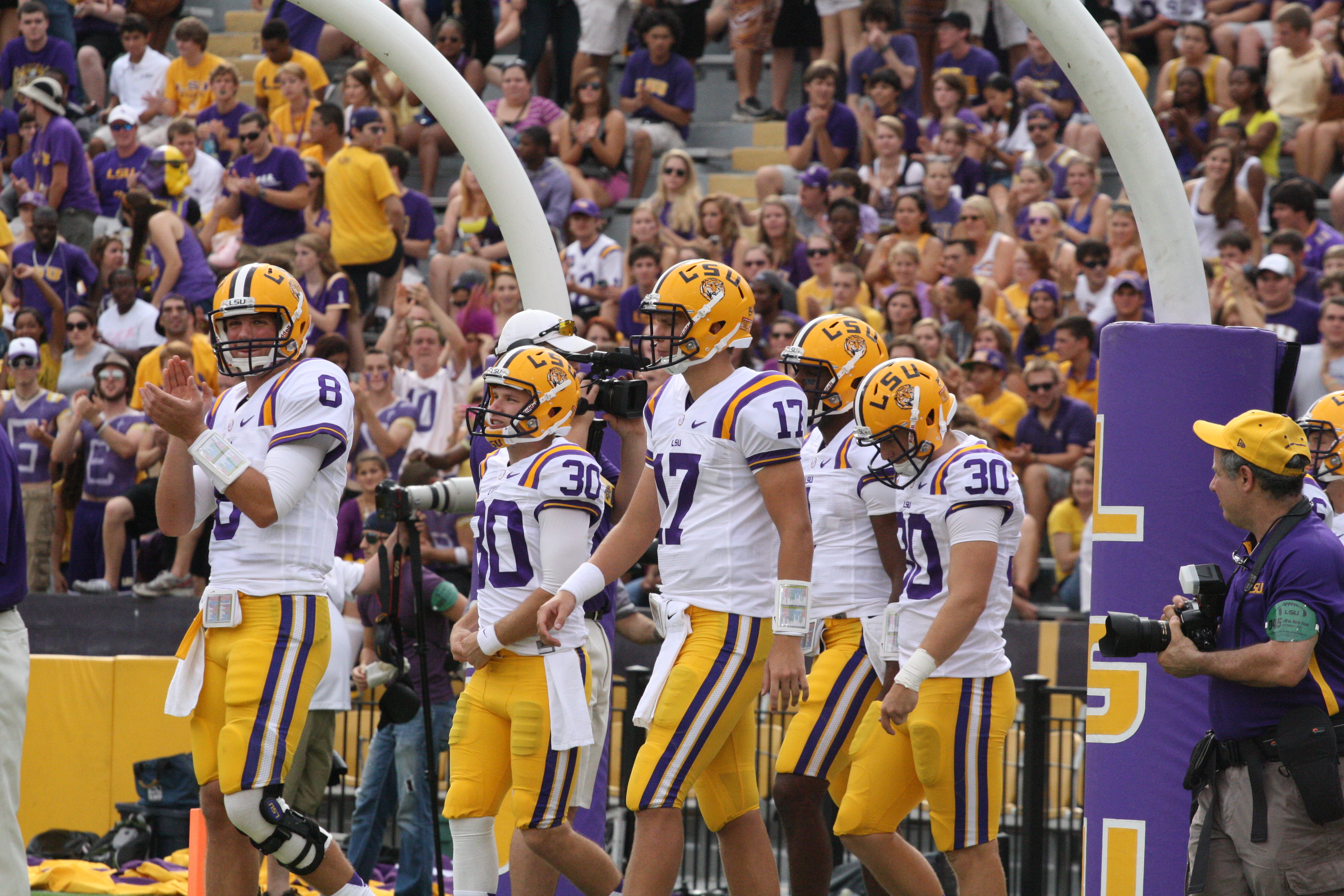 dailycollegefootball.com had a fun time walking the sidelines at the LSU vs North Texas game last night at Tiger Stadium. I t was the first time since 1987 was the last time I watch a game in Tiger Stadium. The game was expected as LSU rolled out to a 24 to 0 lead, one of the touchdowns was Odell Beckham,Jr as he caught a punt from Will Atterberry and return the punt 70 yards for the Tigers second score of the game. Drew Alleman tack on the extra point with Brad Wing holding the kick.