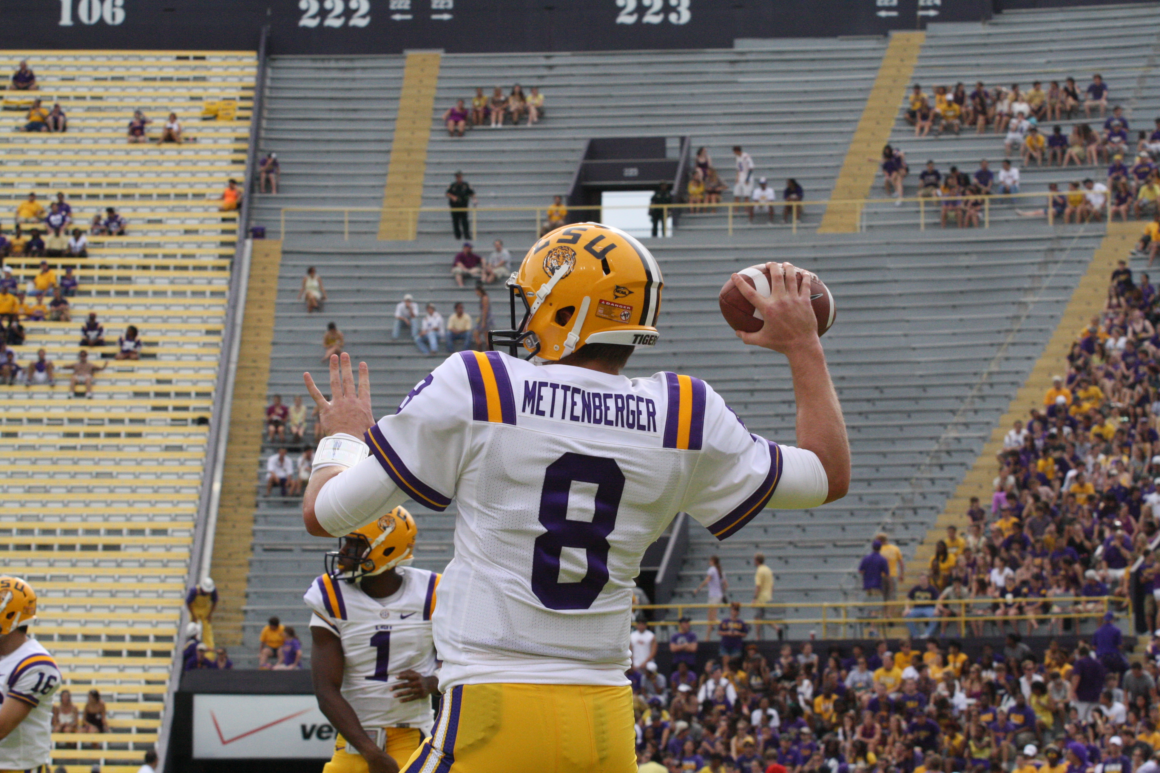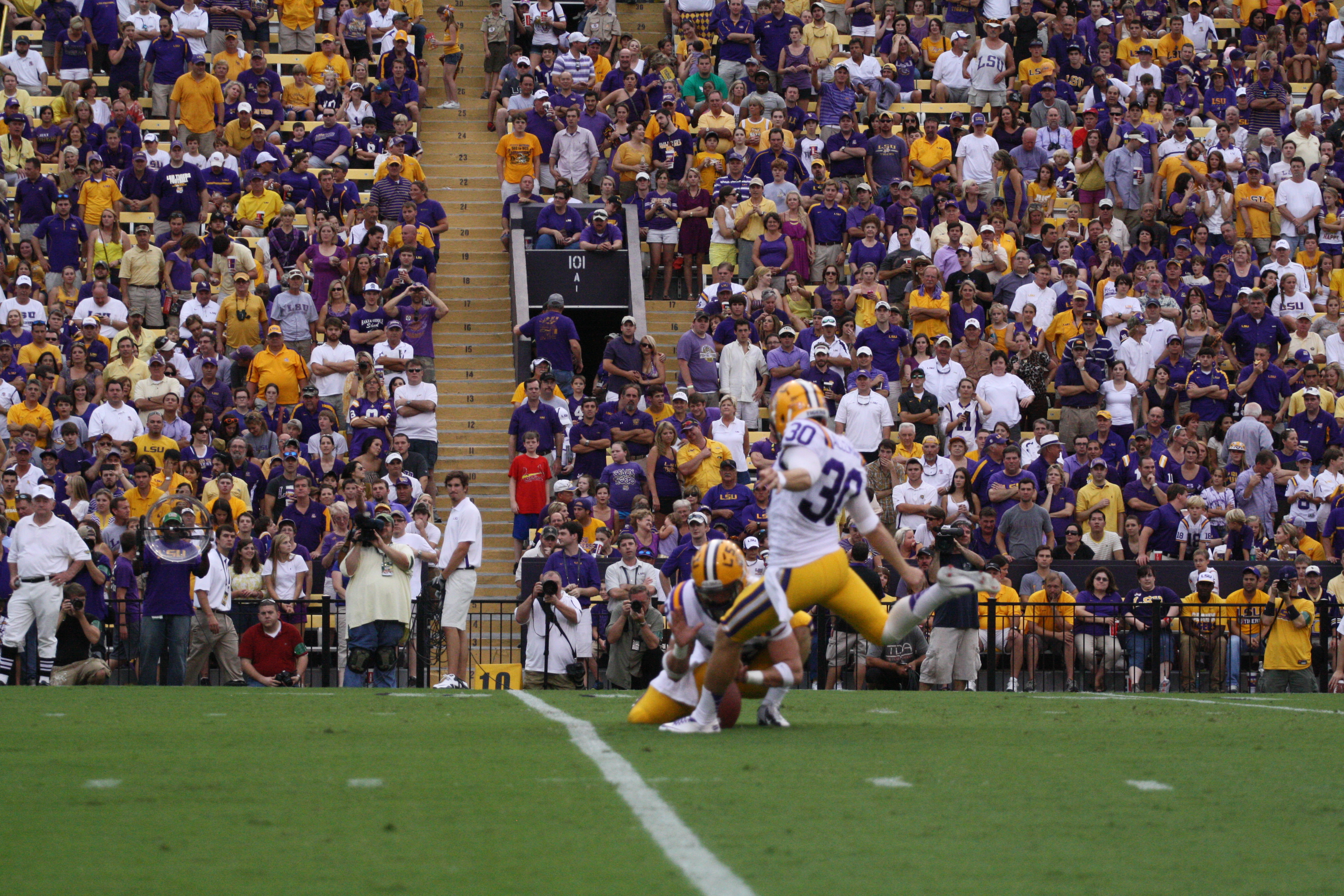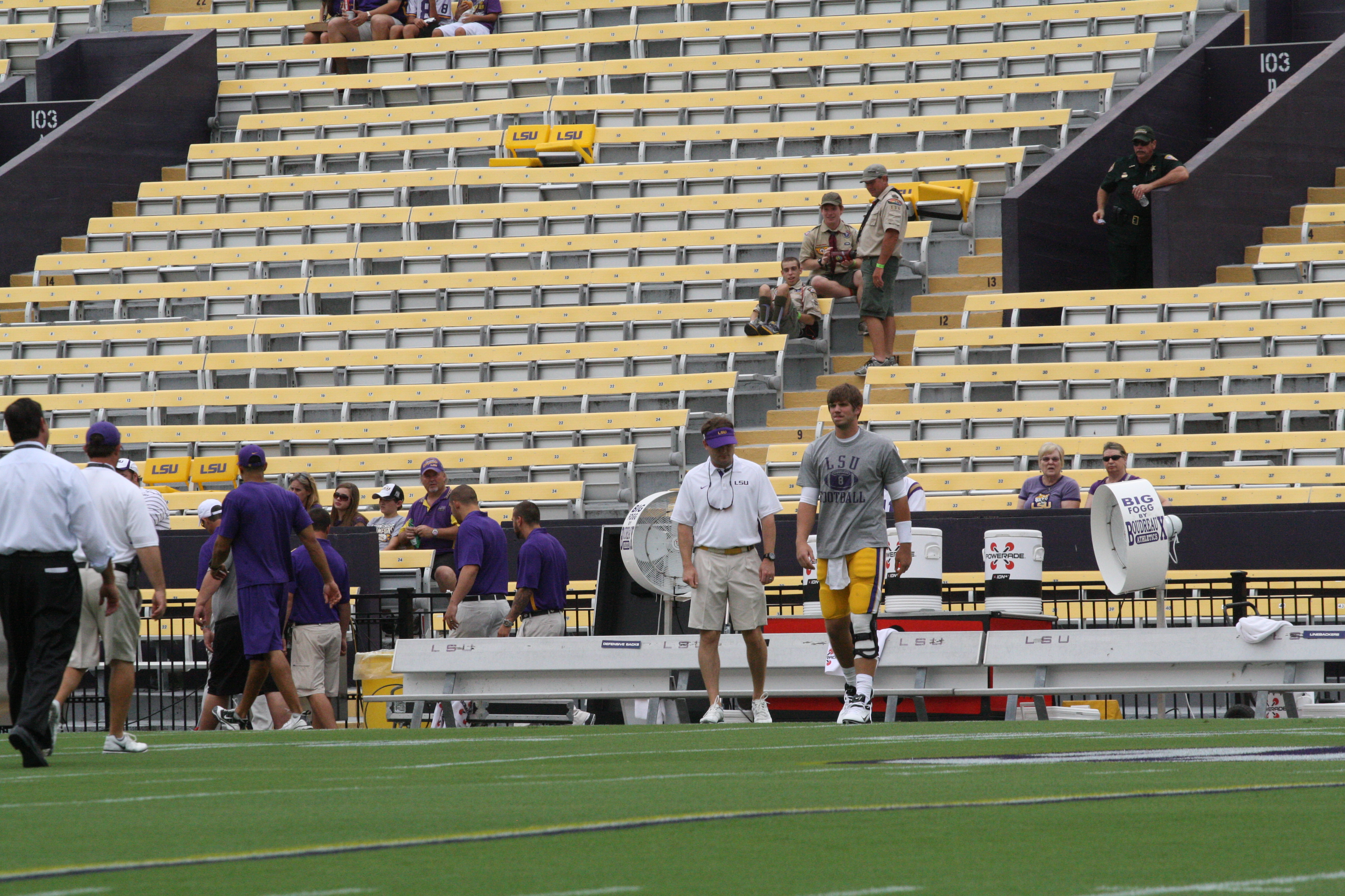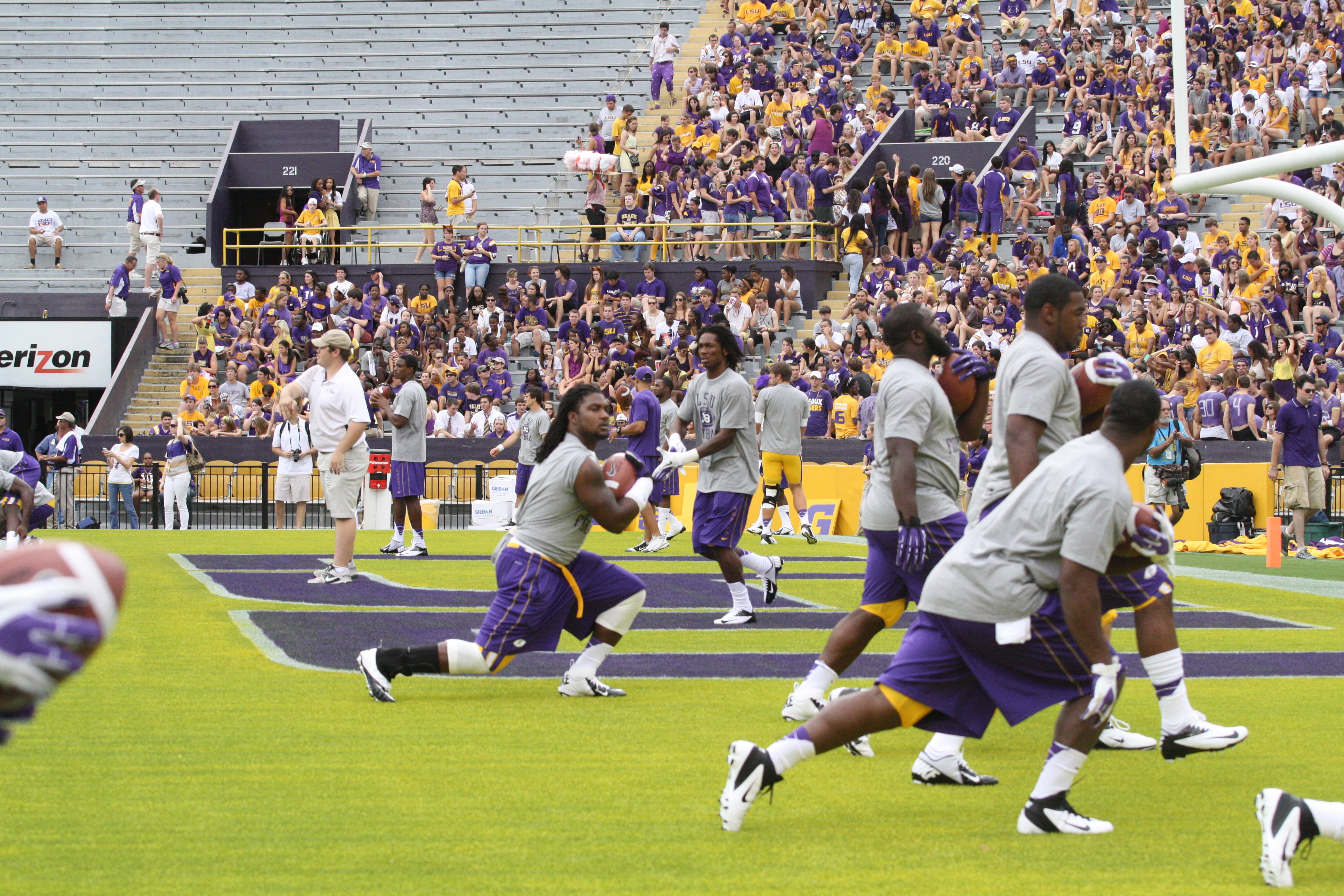 dailycollegefootball.com had a fun time walking the sidelines at the LSU vs North Texas game last night at Tiger Stadium. I t was the first time since 1987 was the last time I watch a game in Tiger Stadium. The game was expected as LSU rolled out to a 24 to 0 lead, one of the touchdowns was Odell Beckham,Jr as he caught a punt from Will Atterberry and return the punt 70 yards for the Tigers second score of the game. Drew Alleman tack on the extra point with Brad Wing holding the kick.